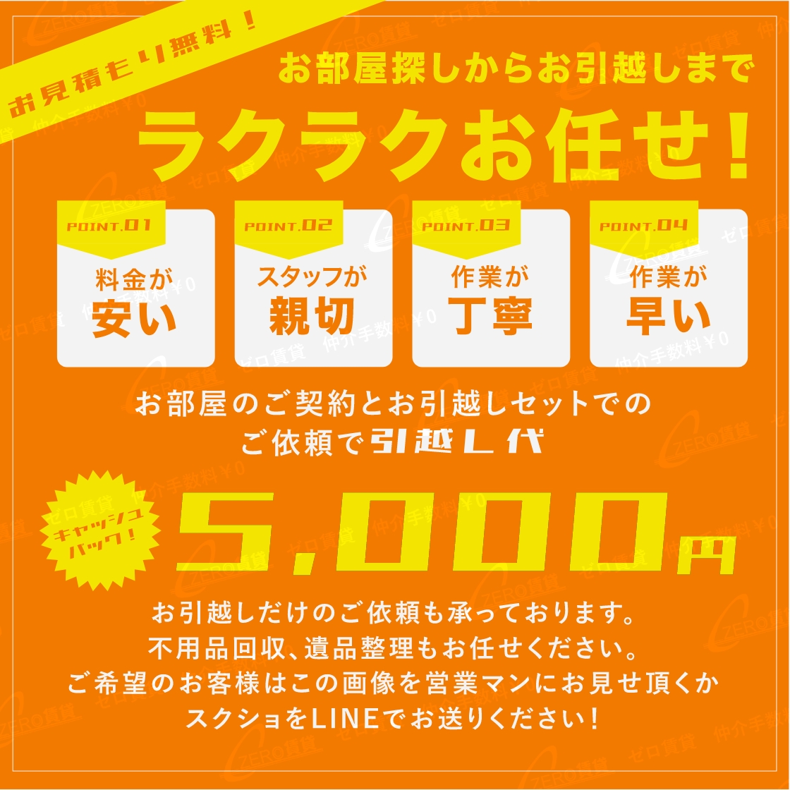 - 当店では、仲介手数料無料に加え、広告費用の削減・LINEを活用した案内のスムーズ化によって少しでもお客様に還元出来る様に仕組み化をしております。他の不動産会社には無い取り組みによって、質の良いサービスをとにかく安く!お客様へご提供出来る様努めております。